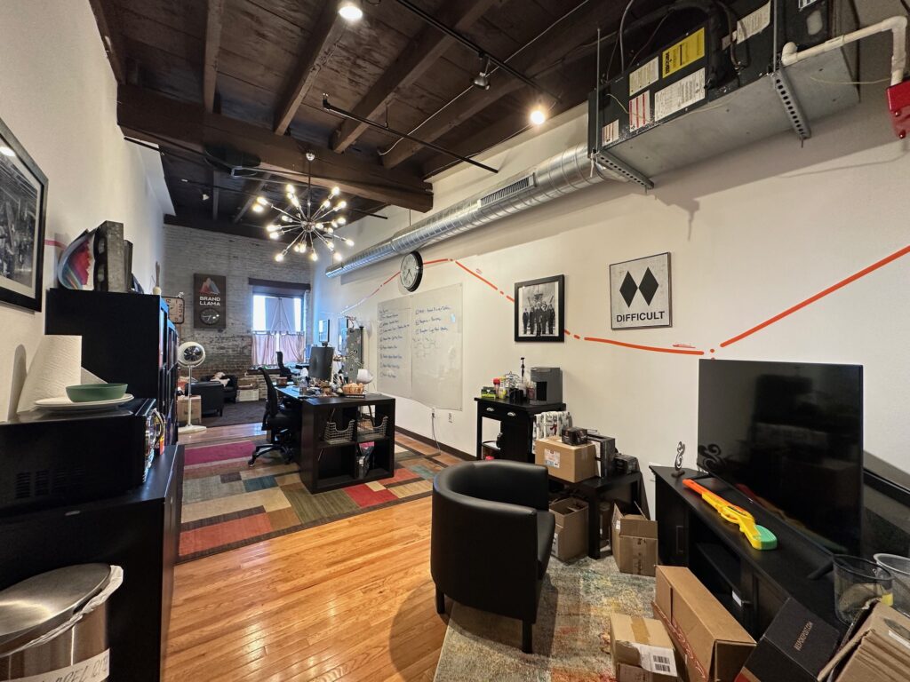 2424 Studios has unit 313 coming available on the 3rd floor in January 2026! It is approximately 375 SF and features a large window, tall exposed timber ceilings, exposed brick, hardwood floors, and dedicated heating and cooling.